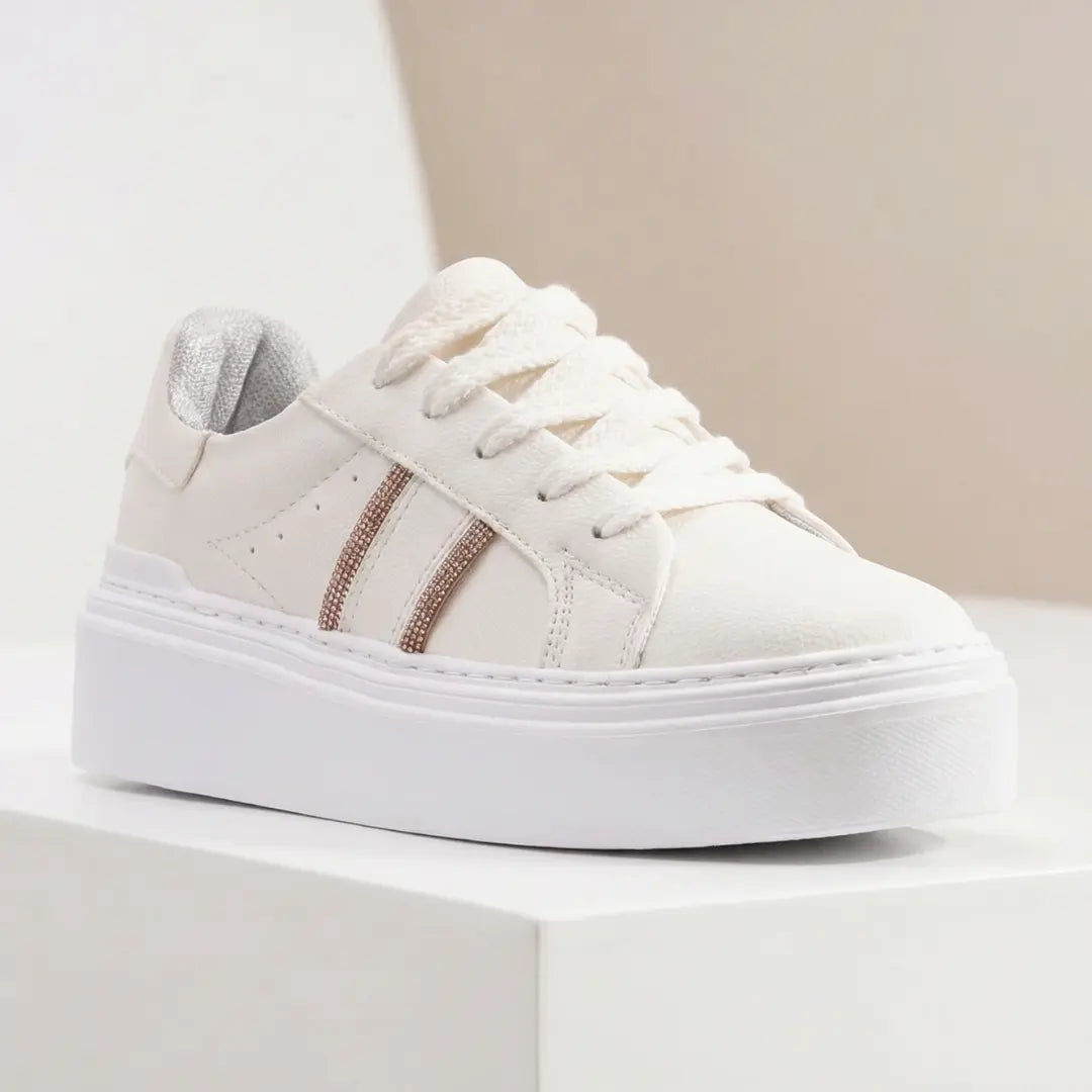 Los tenis deportivos funcionan en contextos formales, casuales y sociales. El diseño en blanco con detalles en oro rosa es suficientemente elegante para usar con traje sastre en la oficina, pero suficientemente versátil para jeans, vestidos, faldas o incluso looks deportivos.